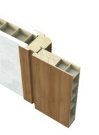 Ce type de pose avec huisserie traditionnelle est la pose classique qui consiste à intégrer le bloc-porte dans la cloison en même temps que la construction de celle-ci et avant la pose des sols. Sur sol fini, il est possible de recouper les pieds de l’huisserie pour obtenir un passage d’air de 10 mm sous porte, et pour les pièces techniques (salle d’eau, chaufferie…) d’adapter votre jeu en fonction de la ventilation existante (DTU). Selon la dimension de l’huisserie et de la cloison, le montant de la porte peut ensuite être habillé afin de masquer la jonction entre le mur et l’huisserie.