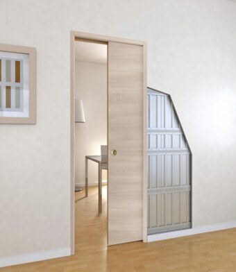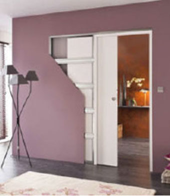 Vous manquez de place ? Optez pour la solution de porte coulissante à galandage : la porte s’escamote à l’intérieur de la cloison, ainsi vous gagnez de l’espace supplémentaire. Il existe des portes à galandage simple ou double. Le principe à galandage permet à la porte coulissante, une fois ouverte, de rester cachée dans la cloison. Seule dépasse du mur une petite partie de la porte avec la poignée ou le tire doigt qui vous permettra de refermer l’ouverture.