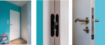 L’utilisation des huisseries invisibles est recommandée afin de créer une cloison lisse sur toute la surface. (Les sur-épaisseurs des portes traditionnelles disparaissent).