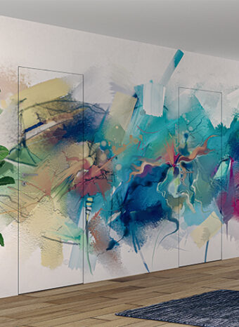 Ce concept de pose permet de dissimuler l’huisserie dans la cloison grâce à la réalisation de joints de plaque de plâtre. La porte devient alors affleurant à la cloison côté tirant, seul le contour de la porte se dessine sur le mur laissant place à la créativité pour imaginer son intérieur.