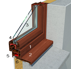 4. Parclose intérieure arrondie adaptée à l’épaisseur du vitrage.